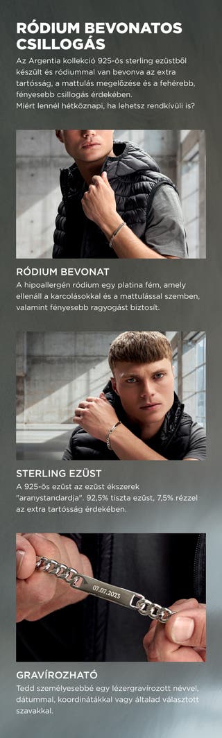Argentia | 925 | Ródium bevonatú sterling ezüst azonosító karkötő - 7 mm