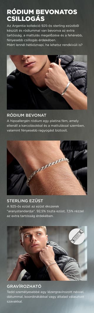 Argentia | 925s | Ródiummal bevont ezüst kábel lánc karkötő - 4 mm