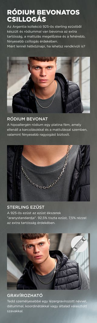 Argentia | 925s | Ródiummal bevont sterling ezüst kábel nyaklánc - 6mm