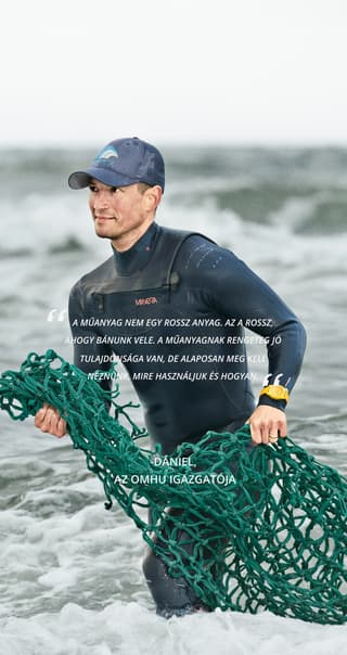 Az omhu: egy dán strandtisztító szervezet, amely visszagyűjti a műanyaghulladékot, és hasznos tárgyakká, például kulcstartókká, úszókká és uszonyokká alakítja őket.