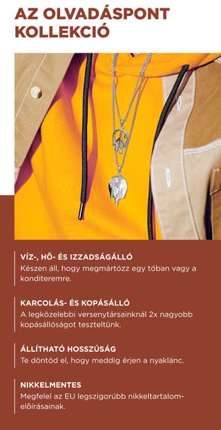 • Kényelmes viselet: A sima élek és a lekerekített lánkszemek kényelmesen feküdnek a bőrön hosszabb viseléskor.