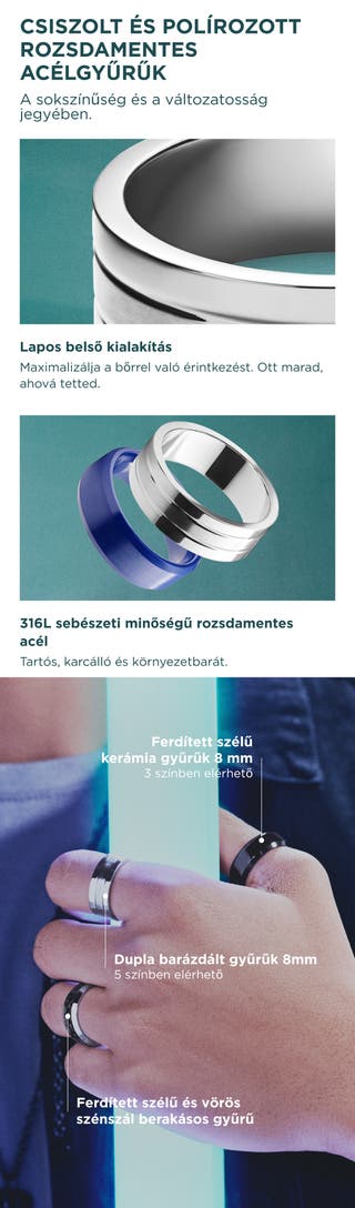 Válassz színt - Ferrum | Lapos ezüst tónusú polírozott és szálcsiszolt rozsdamentes acélgyűrű dupla barázdával - 8 mm