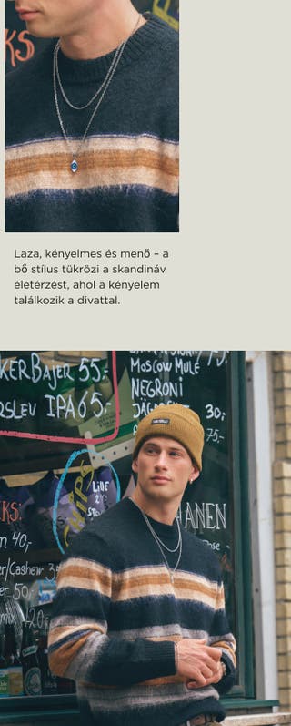 A vízálló sebészeti acélból készült karkötők, gyűrűk és nyakláncok gond nélkül egészítik ki a laza, bő stílusod.