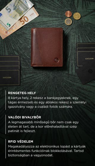 - Akár 20 kártya, készpénz és nyugták tárolására alkalmas