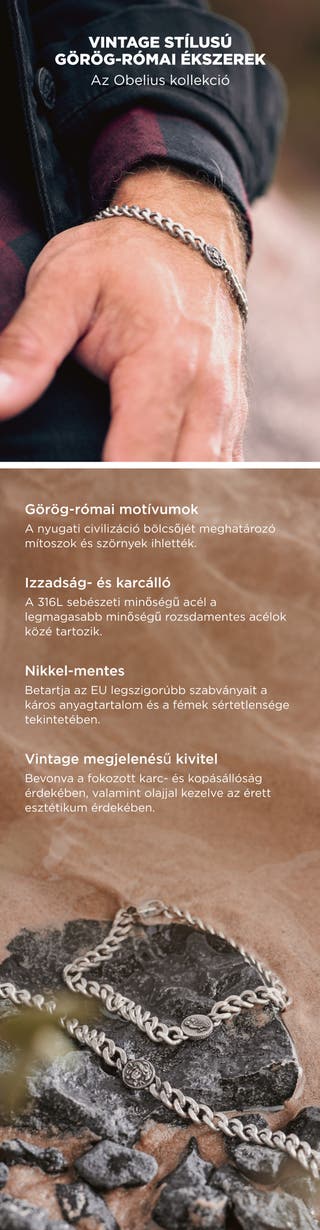 Ez a 316L-es rozsdamentes acélból készült karkötő lapos, curb típusú lánccal és hűvös ezüst-acél hatású felülettel. A szemek pontosan formáltak és illeszkednek, így alacsony profilú, visszafogott megjelenést ad. A kis kerek medál finom gravírozása diszkrét hangsúlyt ad. Az összhatás tiszta, modern, enyhén ipari.