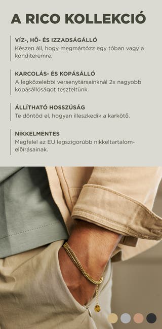Egyedül viselve a vékony dupla lánc letisztult, modern megjelenést ad. Rétegezve más karkötőkkel meleg aranyszínt visz a csuklóra anélkül, hogy túl domináns lenne. Az állítható hosszabbítóval szorosabban vagy lazábban viselheted, így alkalmazkodik különböző stílusokhoz és a napi rutinhoz.