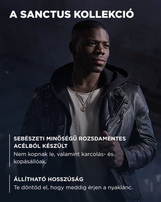 Ez a medálos férfi nyaklánc, sebészeti minőségű rozsdamentes acélból készült. A dupla szemes zabláncnak köszönhetően, ha el is törik egy láncszem, a nyaklánc nem fog leesni, mert megtartja a mellette lévő. Strapabíró delfinkapcsos zárja által, te döntheted el hova essen a medál.