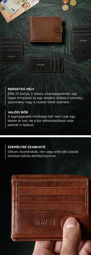 - Akár 20 kártya, készpénz és nyugták tárolására alkalmas
