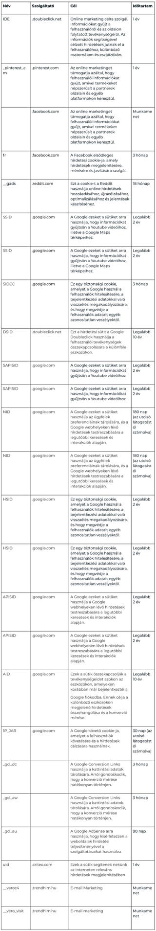Hirdetési partnerek/harmadék féltől származó cookie-k
